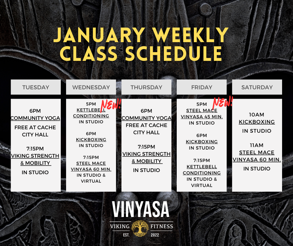 - 7:15pm Viking Strength & Mobility in studio at 406 C Avenue